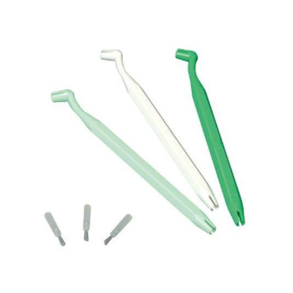 3M penselskafter, farvekodede (mørkegrøn, lysegrøn og hvid, med løse penselhoveder, hvide med hvide hår.