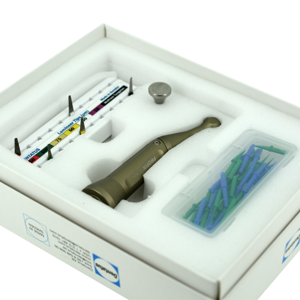 Startersæt med PDX-vinkelstykke, 5 assorterede diamantspidser (1 af hver: LTA-150, LTA-30, LTA-39, LTA-S100 og LTA-S50) og 20 EVA-2000 og 10 EVA-5000 plastspidser samt EVA-60 stempel.