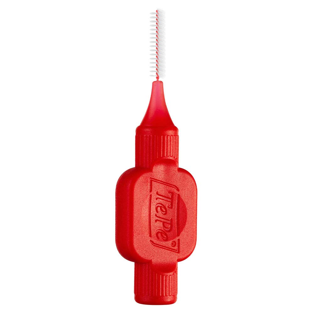 Interdentalbørster med kraftigt, bredt plasthåndtag og plastbelagt tråd, Original, rød, str. 2, 0,5 mm tråd, passage diameter 0,9 mm, cylinderformet. Fremstillet med fossilfri tallolie, hvilket reducerer CO2 aftrykket med 80%, fremstilles i Sverige med grøn energi.
