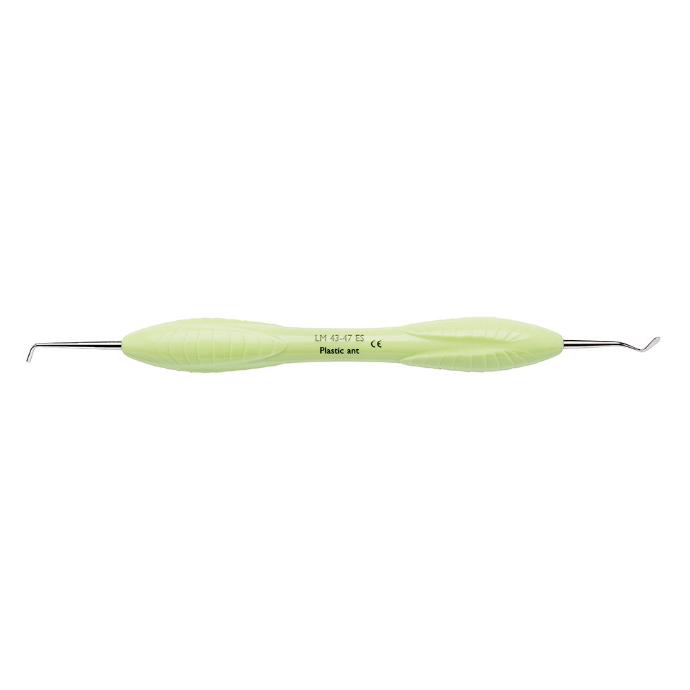 Kompositinstrument, Plastic Instrument, anterior, lille specialinstrument i den ene ende og anterior stopper i den anden ende, anvendes i fronten, 43-47 ES, lysegrøn, med ErgoSense silikonegreb.