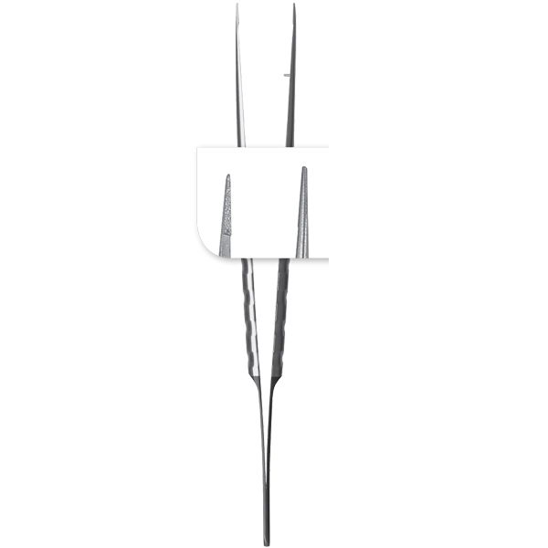 Pincet, mikroanatomisk, med diamantstøv på kæberne for bedre greb, i rustfrit stål, lige, 18 cm.