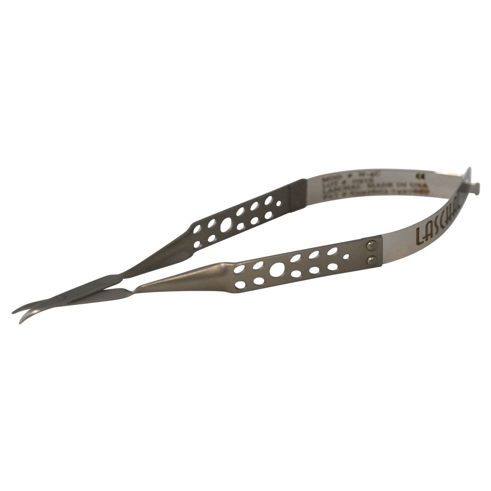 Mikro-kirurgisk supersaks med 1,25 cm langt buet skær, ensartet og ekstrem høj skære-evne i hele bladets længde, sakseskærene krydser hinanden med 300% større vinkel end normatl, hvilket sikrer den gode skære-evne. Brudsikker, knækker ikke.