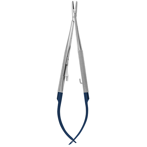 Nåleholder, Barraquer, med Rock Hard belægning på kæberne og runde greb på håndtaget, passer til suturer fra 4-0 til 6-0, 14 cm.