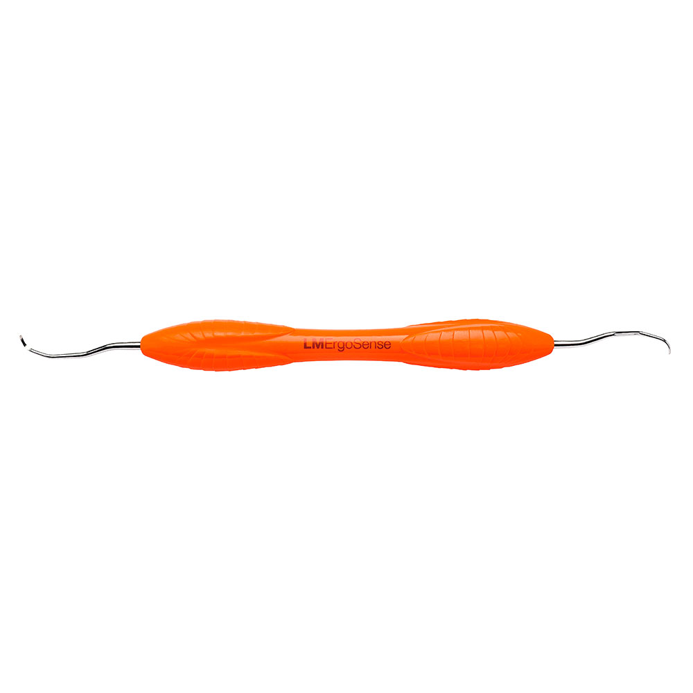 Curette, 211-212R, Gracey rigid, har tykkere og mere stift blad og den arbejdende del er lidt bredere, 11/12, til præmolarer og molarer, mesiale overflader, orange, ErgoSense silikonegreb.