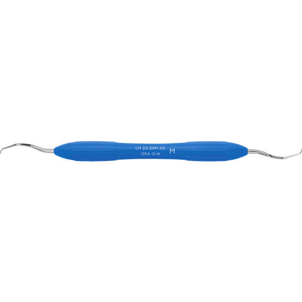 Curette, 213-214M, Mini Gracey 13/14, til præmolarer og molarer, distale overflader, blå, ErgoMax silikonegreb.
