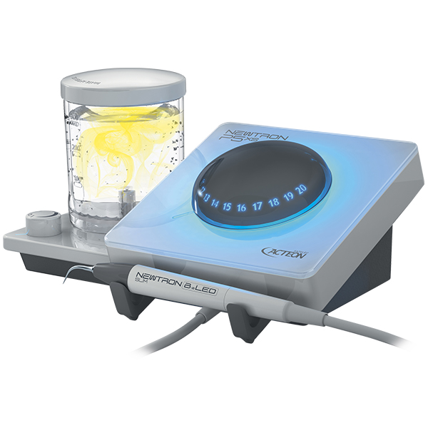 Ultralydsapparat med spidser, som er skånsomme mod emaljen. De kontrollerede svingninger og lineære bevægelser øger din taktile sans og reducerer træthed i hånden. Giver mulighed for total kontrol af skyllevæsken under endo-behandlingen. Med en frekvens mellem 28-36 kHz, som er tilpasset hver enkelt spids, der alle har en hårdhed tæt på tandens egen. Hver spids er påtrykt en farvekode, så du let kan indstille maskinen. Med 300 ml tank, gennemstrømningshastighed 5-40 ml/minut, håndstykkets vægt 48 g, maskinens vægt 2100 g, dimensioner: 26 x 18,5 x 14 cm.