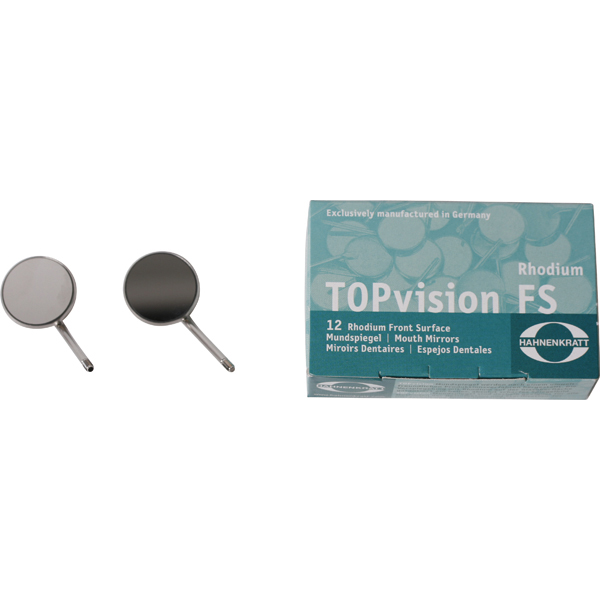 Front-Surface spejle, str. 4, diameter 22 mm, spejlbelægning på glassets overside giver refleksfrit billede, tåler autoklavering, tørsterilisering og ultralyd .