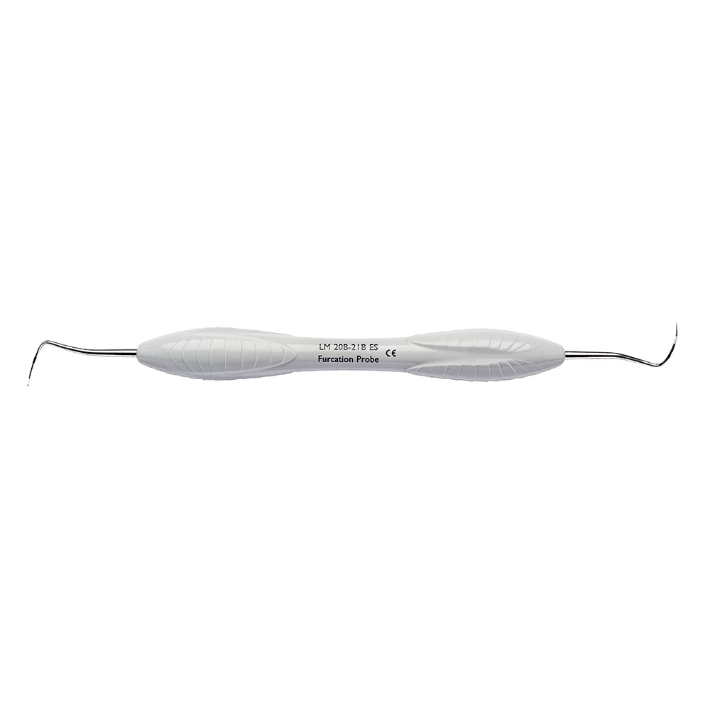 Furkatur pochemåler, 20B-21B XSi, Furcation Probe, med 2 mm farvemarkeringer og kugle i spidsen, lysegrå, ErgoSense silikonegreb,