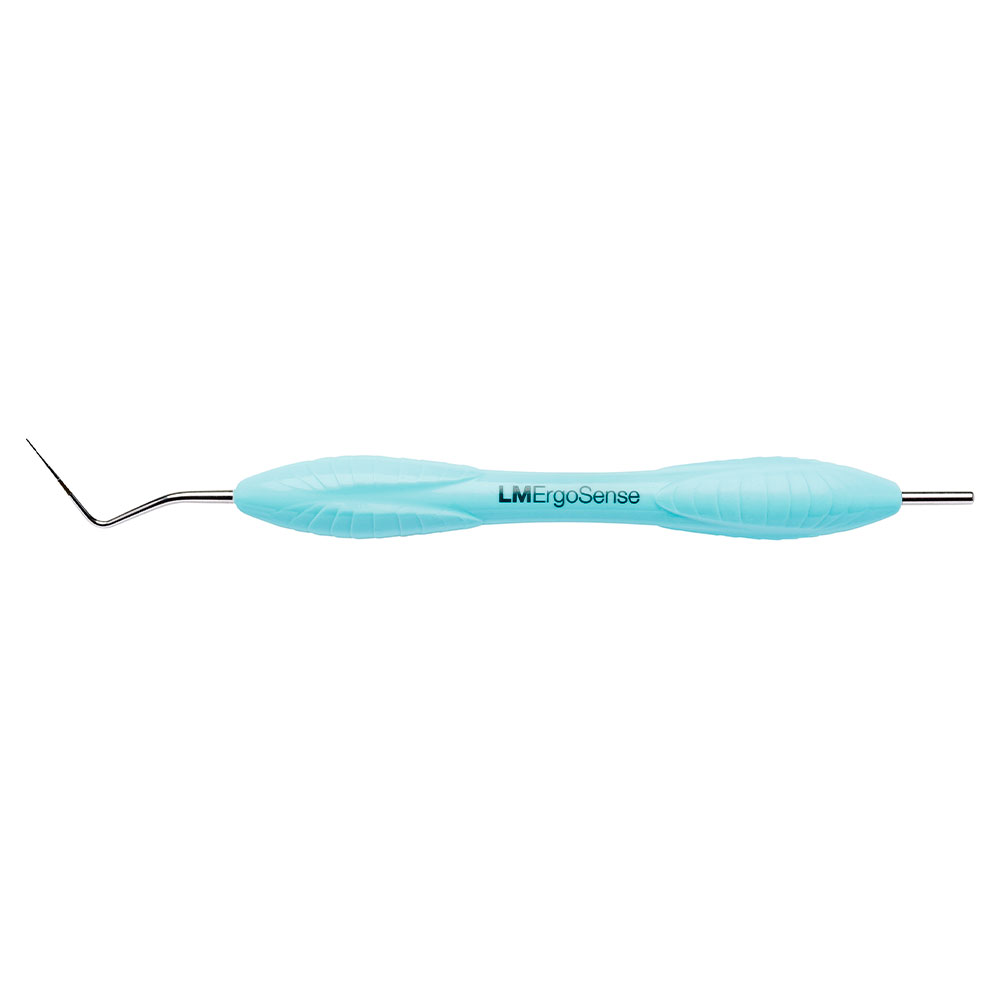 Enkeltendet pochemåler, Marquis, med sort farvemarkeret inddeling ved 3, 6, 9 og 12 mm, uden kugle i enden, 53B, lyseblå, ErgoSense silikonegreb.