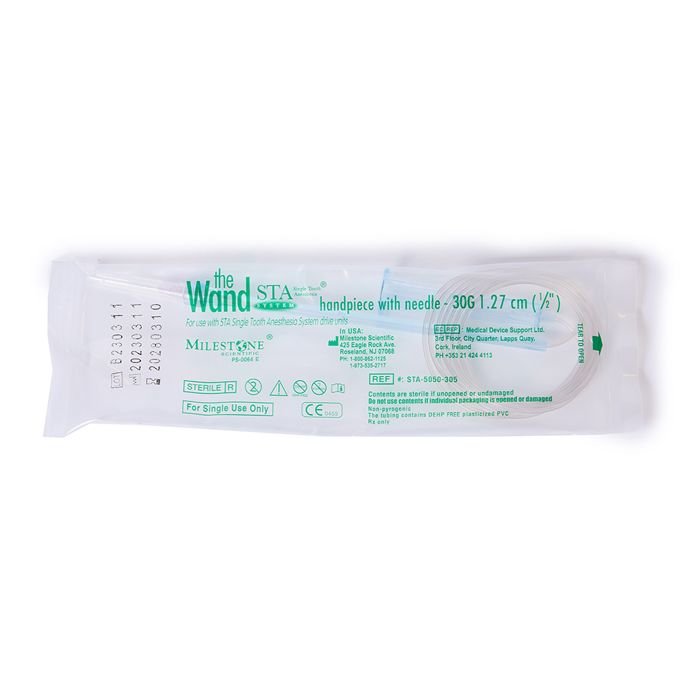 Håndstykker til The Wand STA med kanyle 30G, 0,3 x 12,7 mm, håndstykket er bøjeligt for bedre pasform, beregnet til engangsbrug. Sterilt enkeltpakkede.