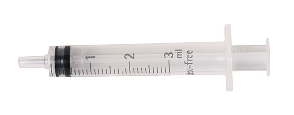 Engangssprøjter, steril plast, luer, 3 ml.