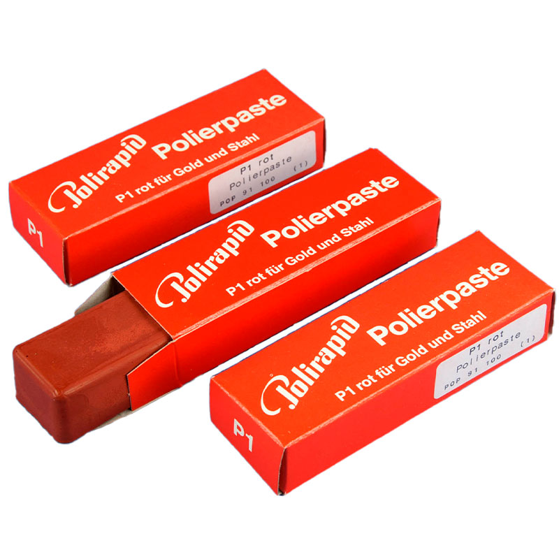 Polerpasta i fast form (blok) til højglanspolering af guld og stål, rød, P1.