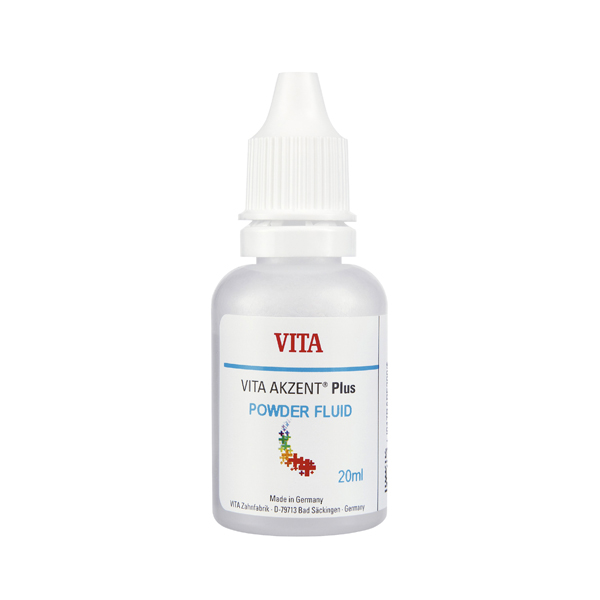 Væske (Powder Fluid) til brug i forbindelse med karakterisering af Vitablock kroner med Vita Akzent Plus.