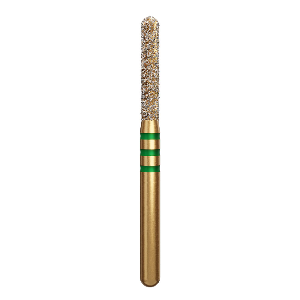 Diamant, Z-Rex, med patenteret ERA-bond for speciel kraftig indlejring af diamantkornene og forøget hårdhed af diamanternes metallegering. Til Crown Cutting, til FG, cylindrisk med afrundet top med 3 blå ringe, længde på den arbejdende del 8 mm, ZR881/016.