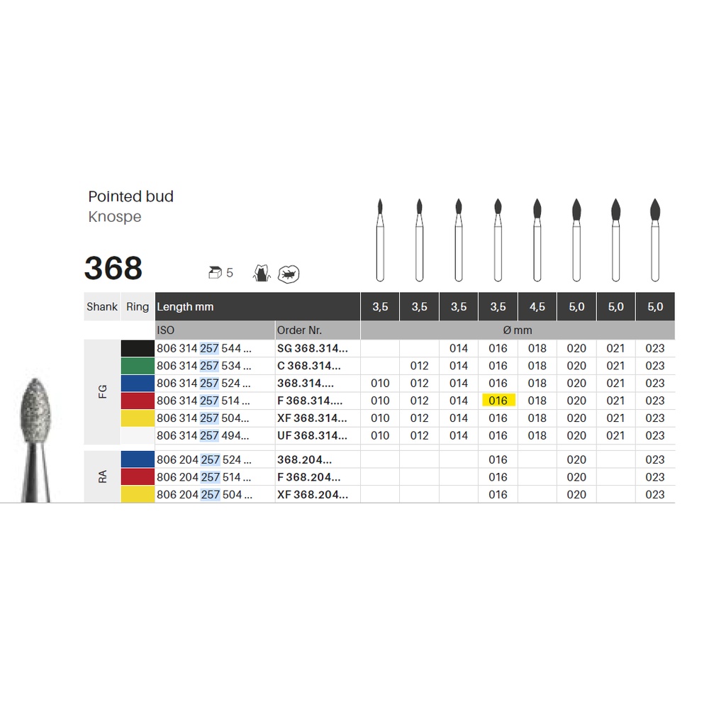 Til pudsning, til FG, knopformet, fin med rød ring, hovedlængde 3,5 mm, 257/016 F (368).