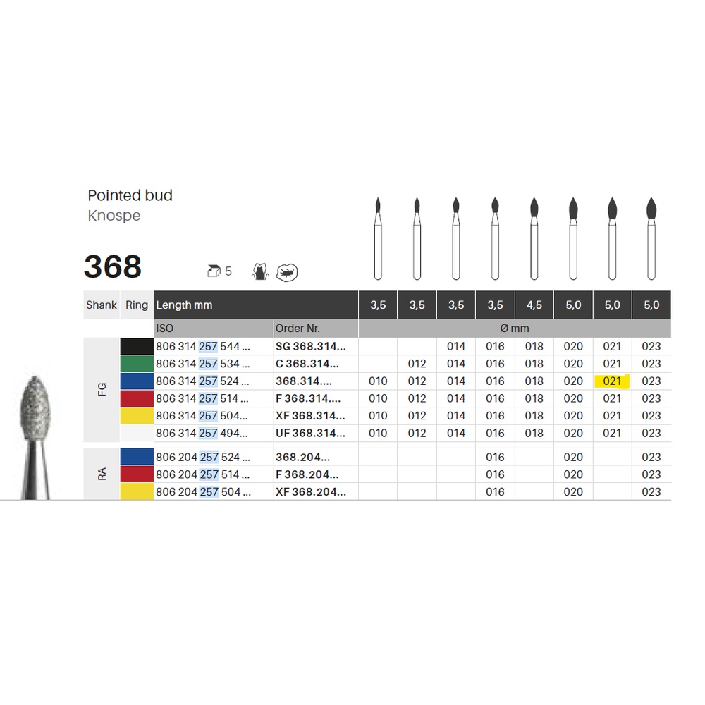 Til pudsning, til FG, knopformet, medium med blå ring, hovedlængde 5 mm, 257/021 M (368).