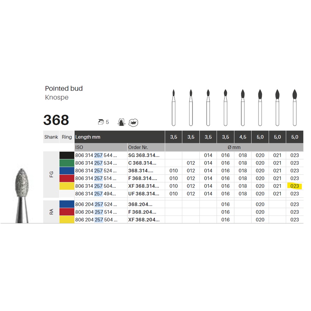 Til pudsning, til FG, knopformet, ekstra-fin med gul ring, hovedlængde 5 mm, 257/023 XF (368).