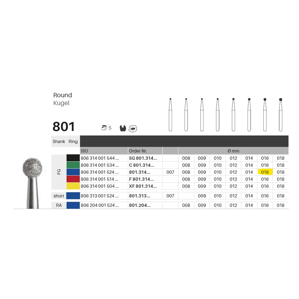 Til præparation, til FG, rund, medium med blå ring, hovedlængde 1,6 mm, 001/016 M (801).