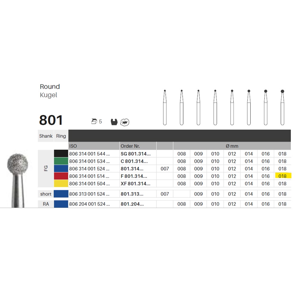Til pudsning, til FG, rund, fin med rød ring, hovedlængde 1,8 mm, 001/018 F (801).