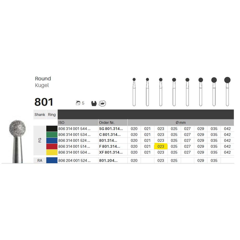 Til pudsning, til FG, rund, fin med rød ring, hovedlængde 2,3 mm, 001/023 F (801).