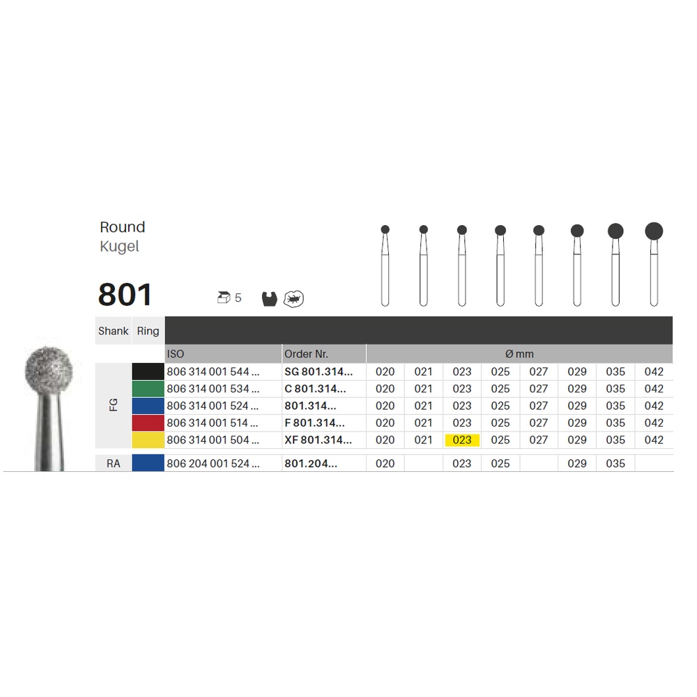 Til pudsning, til FG, rund, ekstra-fin med gul ring, hovedlængde 2,3 mm, 001/023 XF (801).