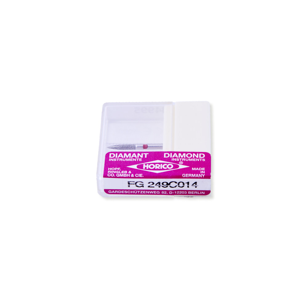 Diamantbor til præparation og pudsning, til FG, flammeformet, fin med rød ring,hovedlængde 8 mm, C249/014.