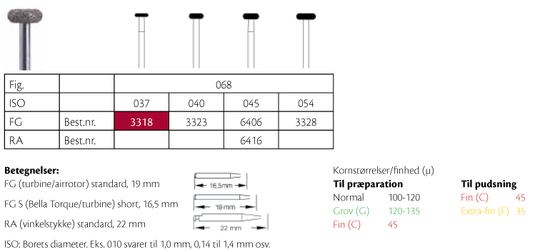 Diamantbor til præparation, til FG, hjul-formet med rund kant til okklusal reduktion, medium uden farvet ringmarkering, hovedhøjde 1,5 mm, 068/037.