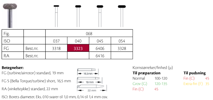 Diamantbor til præparation, til FG, hjul-formet med rund kant til okklusal reduktion, medium uden farvet ringmarkering, hovedhøjde 1,5 mm, 068/040.