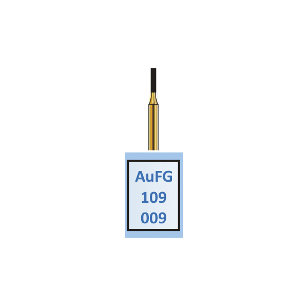 Diamantbor til præparation, guldfarvet, til FG, cylinderformet, medium uden farvet ringmarkering, hovedlængde 4 mm, 109/009.