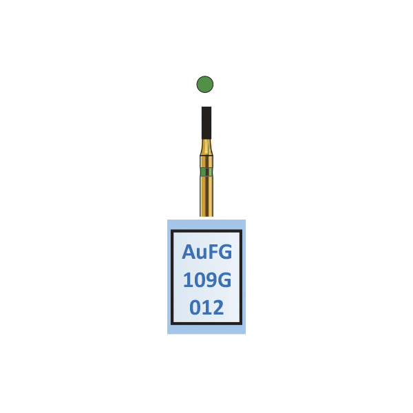 Diamantbor til præparation, guldfarvet, til FG, cylinderformet, grov med grøn ring, hovedlængde 4 mm, 109G/012.