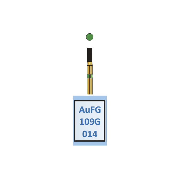 Diamantbor til præparation, guldfarvet, til FG, cylinderformet, grov med grøn ring, hovedlængde 4 mm, 109G/014.