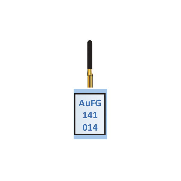 Diamantbor til præparation, guldfarvet, til FG, cylinderformet med afrundet top, medium uden farvet ringmarkering, hovedlængde 8 mm, 141/014.