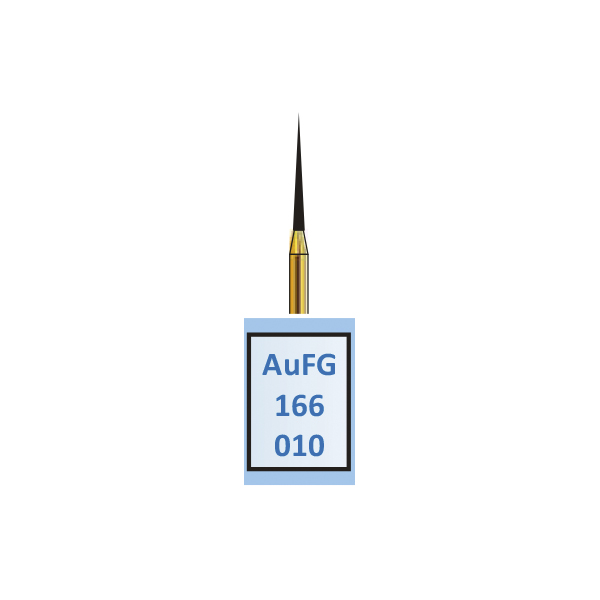 Diamantbor til præparation, guldfarvet, til FG, konisk/kegleformet, medium uden farvet ringmarkering, hovedlængde 10 mm, 166/010.