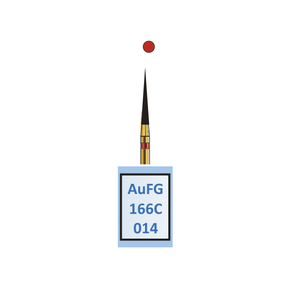 Diamantbor til præparation, guldfarvet, til FG, konisk/kegleformet, fin med rød ring, hovedlængde 10 mm, 166C/014.