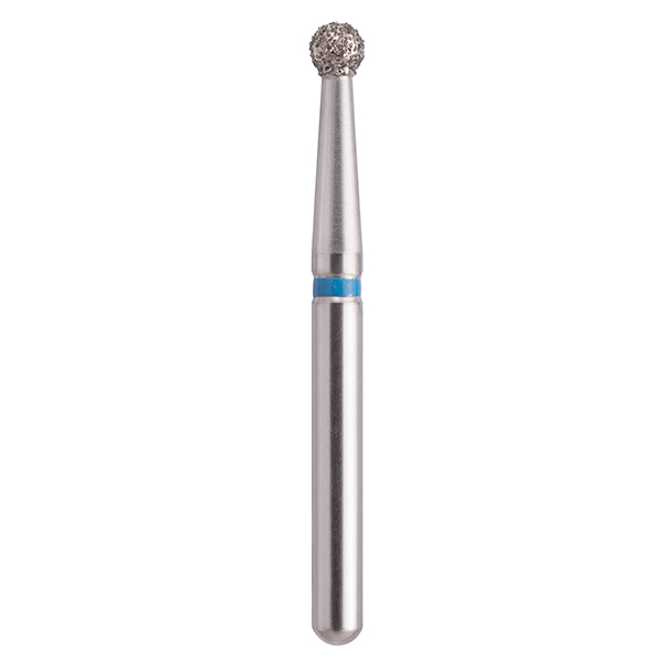 Diamantbor til præparation og pudsning, til FG, 001/016M (801), rund, medium med blå ring, højde på hovedet 1,6 mm.