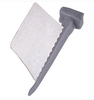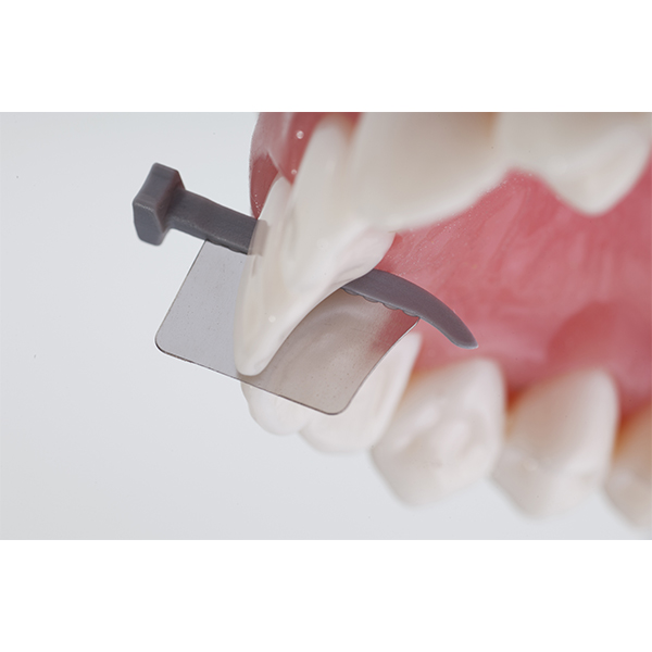 Smal plastkile med monteret høj proxitector (beskyttelsesplade), der kan vinkles let mod nabotanden, grå, anvendes ifbm. præparation til kroner, facader og indlæg så nabotanden ikke beskadiges.