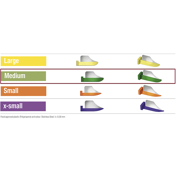 Plastkiler med monteret proxitector. Anvendes ifbm. præparation så nabotanden ikke beskadiges, medium, grøn.