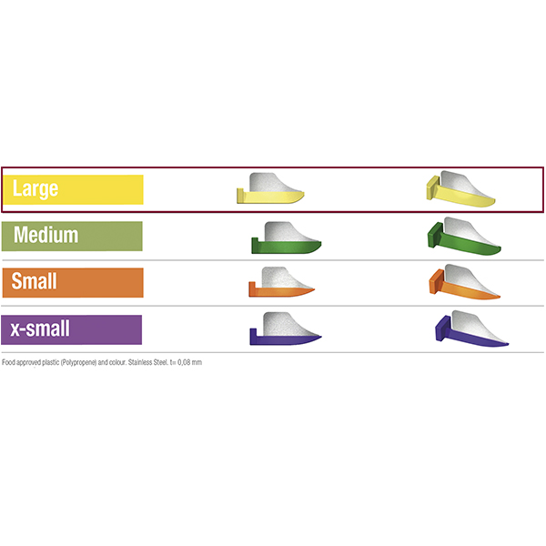 Plastkiler med monteret proxitector. Anvendes ifbm. præparation så nabotanden ikke beskadiges, large, gule.