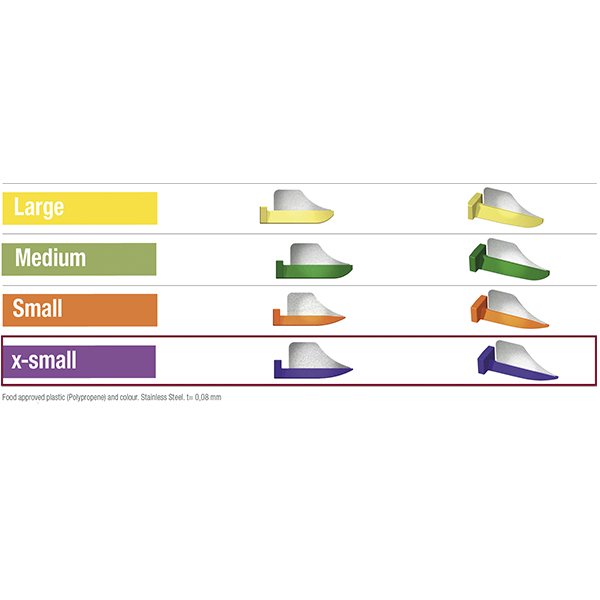 Plastkiler med monteret proxitector. Anvendes ifbm. præparation så nabotanden ikke beskadiges, x-small, lilla.