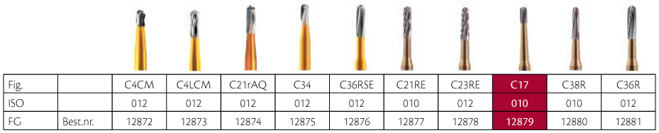 Skrubfræser med højpræcisions-skær, velegnede til at skære i ædle metaller, med gyldent skaft, til FG, C174/010, længde på hoved 2,1 mm.