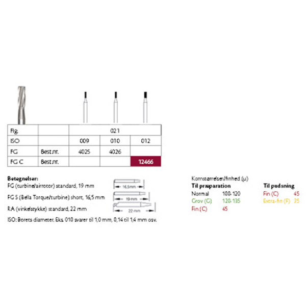 Hårdmetalbor til præparation, til RA, C21 cylindrisk, str. 012.
