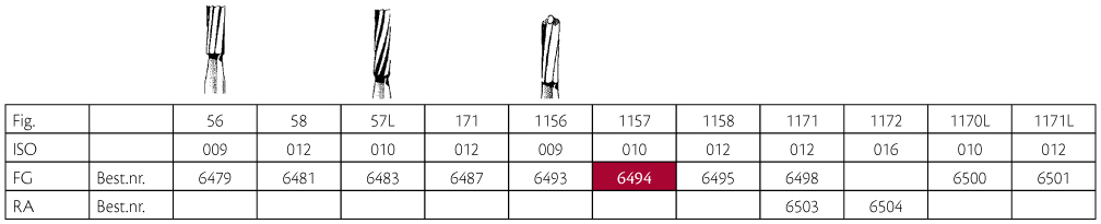 Hårdmetalbor til præparation, til FG, 1157/010, cylinderformet med afrundet top, hovedhøjde 3,7 mm.