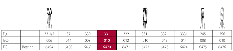 Hårdmetalbor til præparation, til FG, 331/010, pæreformet, hovedhøjde 1,6 mm.