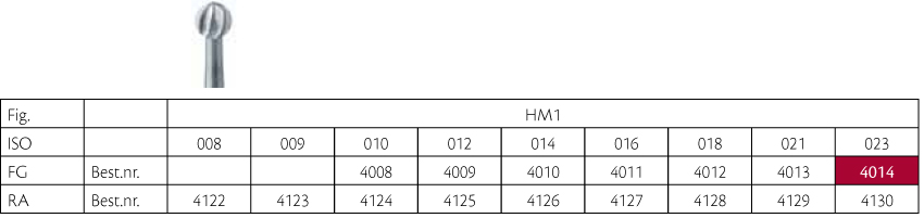 Hårdmetalbor til præparation, til FG, 1/023, kugleformet.