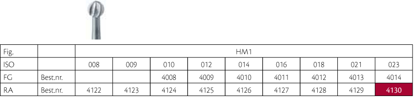 Hårdmetalbor til præparation, til RA, 1/023, kugleformet.