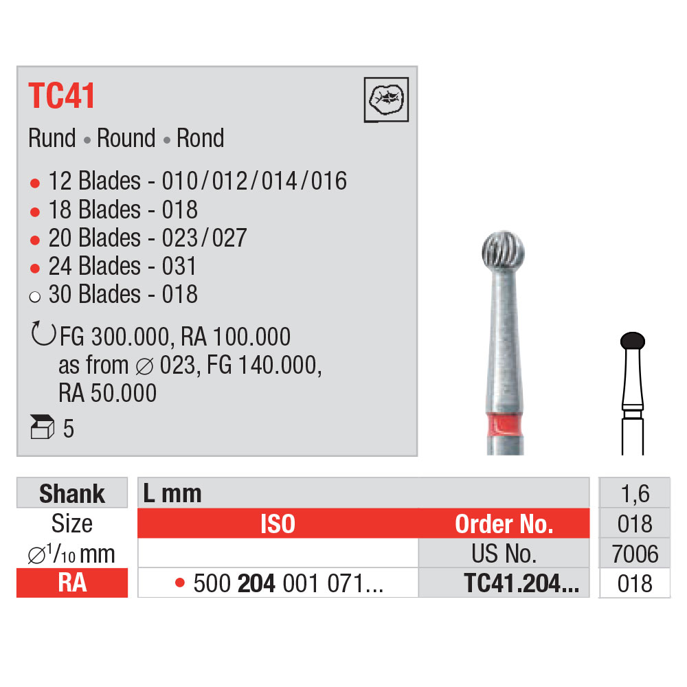 Finerbor til pudsning, hårdmetal, 18-bladede, til RA, rund, med rød ring, str. 018, hovedhøjde 1,8 mm.