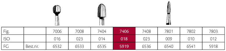 Hårdmetalbor til pudsning, guldfarvede, 12-bladede, til FG, æg-formet, 7406/018, hovedhøjde 3,4 mm.