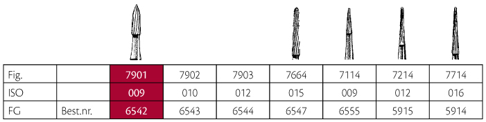 Hårdmetalbor til pudsning, guldfarvede, 12-bladede, til FG, nåleformet, 7901/009, hovedhøjde 2,2 mm.