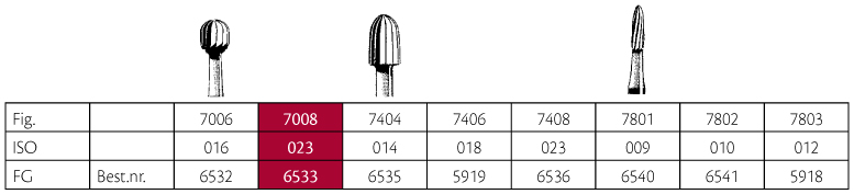Hårdmetalbor til pudsning, guldfarvede, 12-bladede, til FG, rund, 7008/023, hovedhøjde 2,3 mm.
