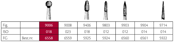 Hårdmetalbor til pudsning, guldfarvede, 30-bladede, til FG, rund, 9006/018, hovedhøjde 1,8 mm.